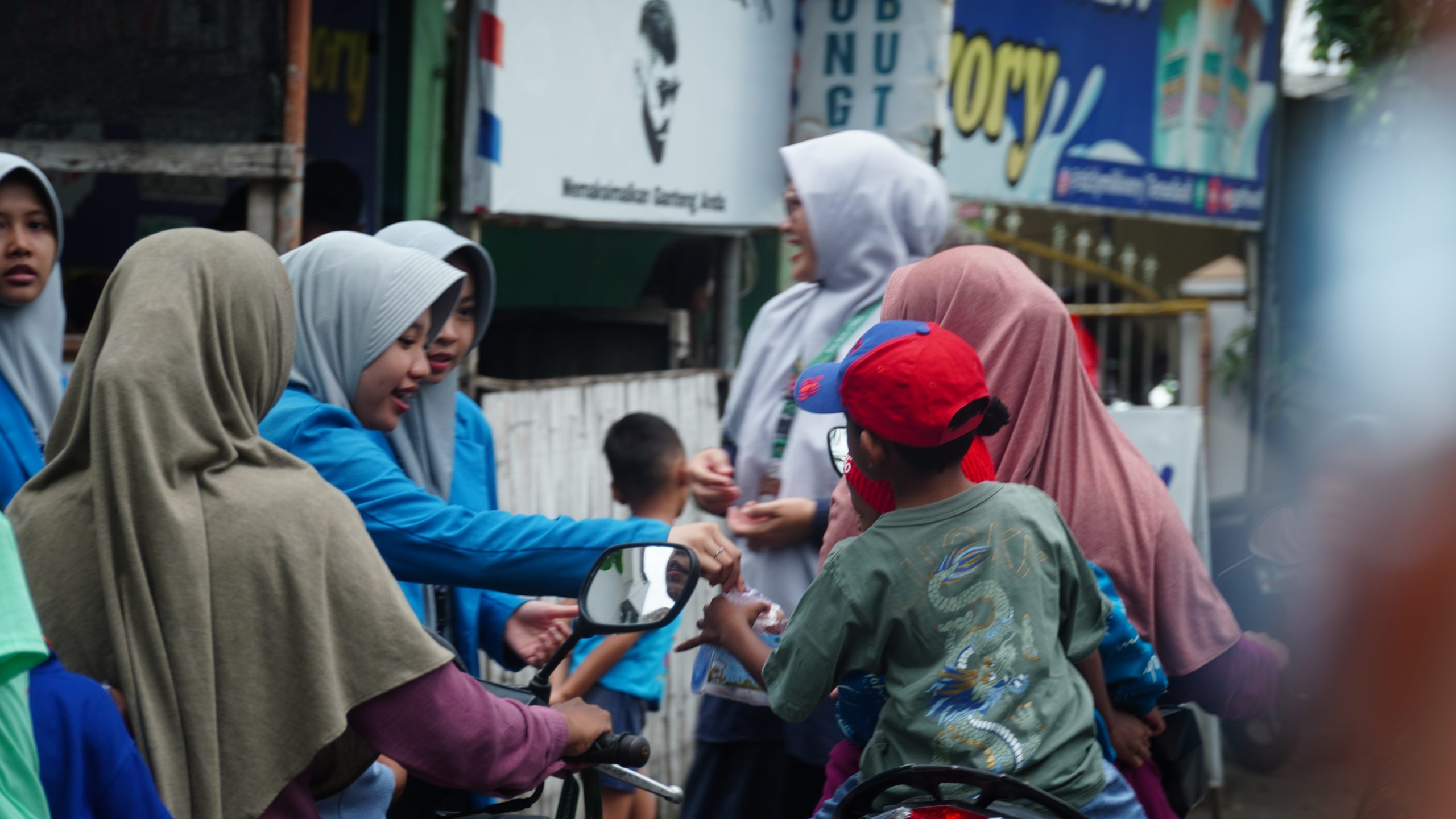 Untuk menjaga kelancaran dan keamanan kegiatan, PKBM turut berperan dalam pengaturan lalu lintas di lokasi. Adapun tim putri difokuskan di titik pembagian depan rumah Pak Heboh.