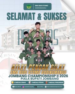 Gadingmangu β€” Prestasi gemilang kembali ditorehkan oleh siswa-siswi SMA Budi Utomo Gadingmangu melalui cabang olahraga Pencak Silat. Dalam ajang Jombang Championship II Tahun 2026 Piala Bupati Jombang, para atlet SMABU berhasil meraih 12 medali, terdiri dari 8 medali emas, 3 medali perak, dan 1 medali perunggu. Kejuaraan yang diikuti oleh atlet-atlet terbaik dari berbagai daerah …
